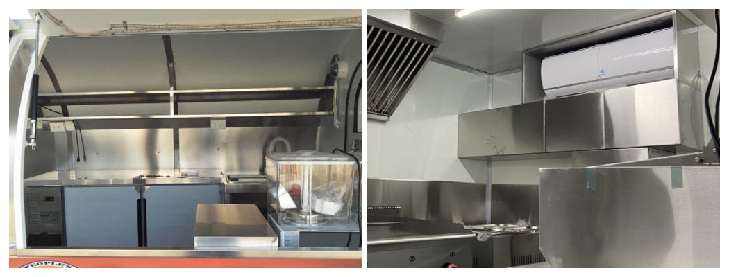 We advise against asking for a large refrigeration room blindly, even if you have a large demand for kitchen inventory. You don't need to carry all ingredients and supplies with you during daily operations. Deciding which one you should stock up on according to the sales is a much wiser approach for saving room in your food trailer.