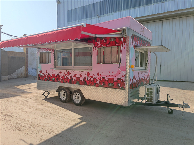 This 13ft mobile concession trailer is specifically designed to meet the needs of the mobile flower business, with ample refrigeration space, storage compartments, and shelves to store and transport your flowers safely. Its large concession window allows you to showcase your bouquets, and a retractable awning shields both your flowers and customers from rain and run. The style and appearance of the truck can be customized to match your business needs.