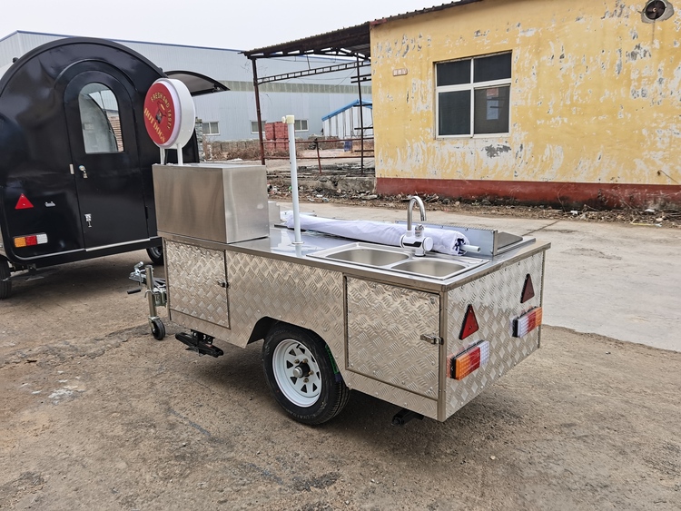 We recently customized a hot dog vendor cart for our American client, which is an ideal solution for selling hot dogs at street corners or events. The hot dog cart comes equipped with all the commercial kitchen equipment required to make hot dogs, such as a griddle, a deep fryer, and containers for ingredients. The double sink compartment water sink ensures a stable water source and maintains food cleanliness and hygiene. If you need an extra, we can install one for you to make sure the food cart meets the code and regulations in your city.