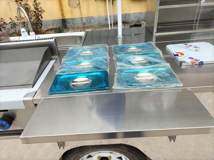 Stay organized and self-sufficient with our thoughtfully designed small hotdog cart. It features six stainless steel containers for storing your ingredients and bread, ensuring everything is easily accessible and ready for assembly. The sliding cabinet on the countertop provides additional storage space for utensils and condiments, while the large storage compartment offers ample room for all your supplies. With everything at your fingertips, serving up hot dogs has never been more efficient.