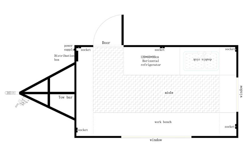 No matter what you need, we can build it! Just like traditional bakeries, mobile bakery trailers should be outfitted with commercial kitchen equipment that enhances baking capabilities and efficiency. From ovens and cake displays to exhaust hoods and sinks, we offer a wide range of commercial-grade kitchen equipment and appliances. Whatever model you require, we can source and install it into your food trailer. You can also add your own professional equipment. We'll handle a series of tasks to facilitate your easy installation and usage, such as drilling, designing separate circuits, and installing special outlets. Please share your equipment list with us during the design phase. |