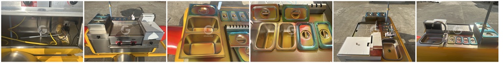 The YT-HS230 is one of our compact but fully functional hot dog carts, designed for vendors who want mobility without losing cooking capacity. For Matrana, we customized several parts of the cart to match her layout preferences and equipment needs.