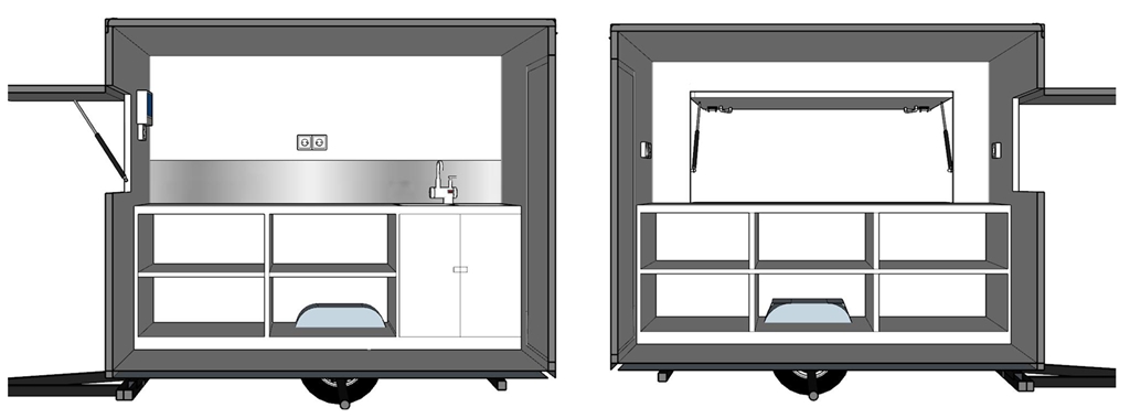 This setup allows Yacine to configure the trailer according to his food permit and future menu plans.